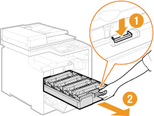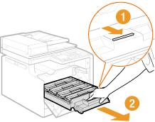 お買い上げ時、本体内部にはトナーカートリッジが取り付けられています。トナーカートリッジからシーリングテープを引き抜かないと本機をお使いにはなれませんので、必ずテープを抜いてください。トナーカートリッジの準備を始める前に、