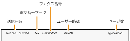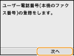 発信元のファクス番号とユーザー略称を登録します。これらの情報は、相手がファクスを受信したときに、出力紙の上部に印刷されます。