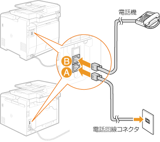 ファクス機能付きの電話機を接続する場合は、電話機側のファクス自動受信設定を無効にしてください。