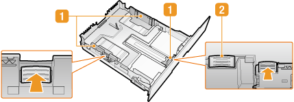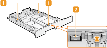 リーガル(LGL)サイズの用紙をセットするときは、このレバーをつまみながらカセットを引き伸ばします。カセットは縦方向に伸びます。