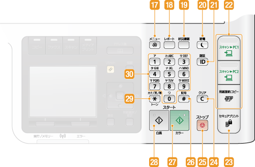 ここではMF8570Cdwの操作パネルを掲載しています。お使いの機種により、使用できるキーや機能は異なります。