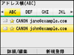 アドレス帳画面(MF8570Cdw / MF8530Cdn / MF8280Cwのみ)