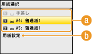 給紙カセットにセットした用紙のサイズと種類を設定するときに選びます。また、手差し給紙口でよく使う用紙も設定しておくことができます。