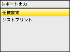 (レポート)を押すと、<レポート出力>画面が表示されます。ファクスの送受信レポートやアドレス帳の一覧などをプリントします。また、レポートを自動的にプリントする設定もこの画面から行います。