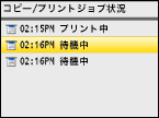 選んだ項目に応じて、現在の状況を表示します。以下の画面は、<コピー/プリントジョブ状況>の表示例です。