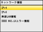 IPアドレスなどのネットワークの設定内容や、無線LANの通信状況が良好であるかどうかなどを確認できます。
