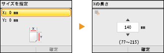 を押します。 / またはテンキーで<X>辺の長さを入力し、<確定>を押します。![]() |