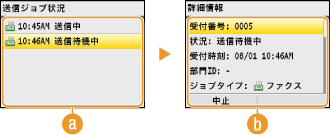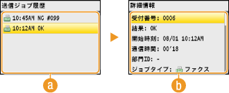で<送信ジョブ>または<受信ジョブ>を選び、