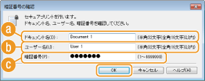文書名、ユーザー名、暗証番号を確認し、[OK]をクリックする