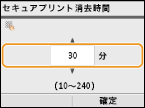 セキュア文書がメモリーに保存される時間を設定し、<確定>を押す