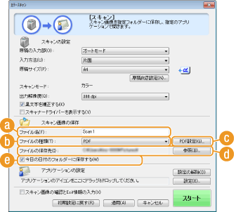 )で[PDF]、[PDF(1ページ)]、[PDF(複数ページ)]、または[PDF(ページ追加)]を選んだ場合、PDFファイルの詳細を設定できます。