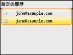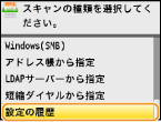 過去に指定した宛先を3件までさかのぼって指定できます。そのときに使った濃度などのスキャン設定も同時に呼び出されます。