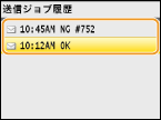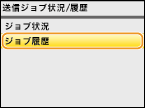 <ジョブ履歴表示のON/OFF>が<OFF>に設定されていると、送信履歴は確認できません。
