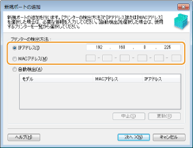 本機のIPアドレスが変更されたときは、新しいポートを追加します。プリンタードライバーやファクスドライバーをWindowsのプリンターフォルダーからインストールした際に正しいポートを選択しなかった場合なども、この方法で修正できます。