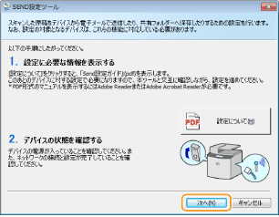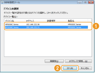 [デバイス一覧]から本機を選び、[次へ]をクリックする