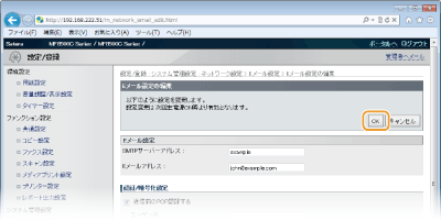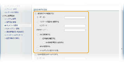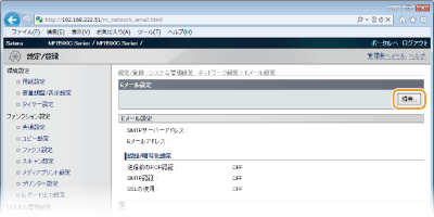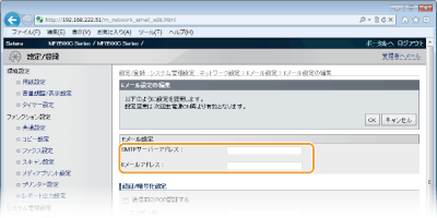 送信前のPOP認証やSSLによる暗号化など、詳細なEメールの設定を行うときはリモートUIを使います。必要な設定内容については、プロバイダーやネットワーク管理者にお問い合わせください。