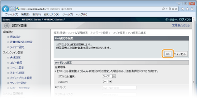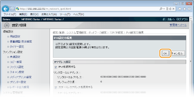DNSサーバーのIPアドレスを入力します。「ff」で始まるアドレス(マルチキャストアドレス)は入力できません。 [セカンダリーDNSサーバーアドレス]