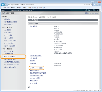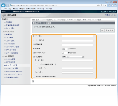 LDAPサーバーが導入されている環境では、サーバーに登録されているファクス番号やEメールアドレスを本機から検索して宛先指定したり、本機のアドレス帳に登録したりできます。LDAPサーバーは最大5つまで登録できます。なお、登録はリモートUIを使って行います。