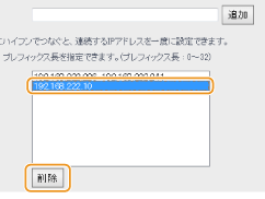 削除するIPアドレスを選び、[削除]をクリックします。 ![]() |