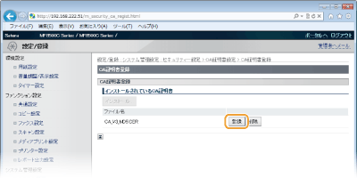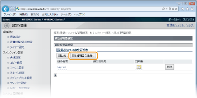 [鍵と証明書の登録]または[CA証明書登録]をクリックする