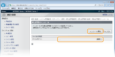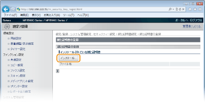 パソコンから本機に鍵ペアまたはCA証明書がインストールされます。