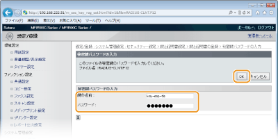 鍵の名前とパスワードを入力し、[OK]をクリックする