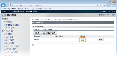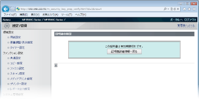 [セキュリティー設定]をクリックし、鍵ペアを検証するときは[鍵と証明書設定]を、CA証明書を検証するときは[CA証明書設定]をクリックする