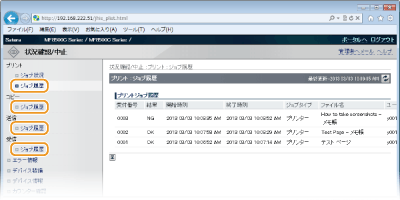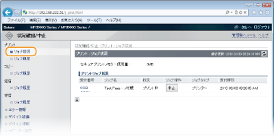 部門別ID管理が設定されている場合、または管理者モードでログインした場合、部門IDの設定に関係なく、すべての印刷文書の状況が表示されます。