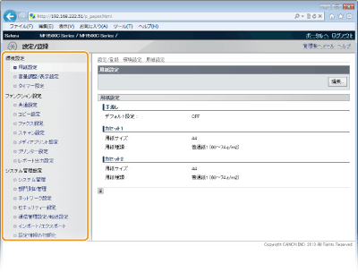 [システム管理設定]は、管理者モードでログインした場合にのみ変更できます。