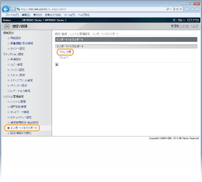 [アドレス帳]をクリックする