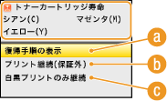 以下の「XXXX」には、ブラック、イエロー、マゼンタ、シアンが表示されます。