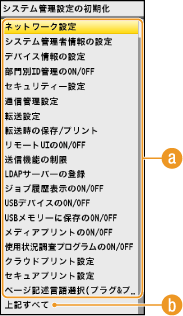 )にあるシステム管理設定の設定値を初期化してお買い上げ時の値に戻すことができます。設定項目によっては初期化後に本機を再起動する必要があります。